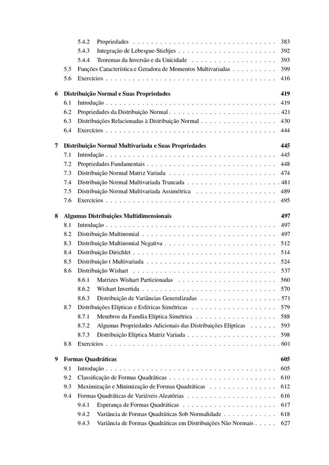 O livro Fundamentos de Probabilidade foi escrito pensando em atender um publico bastante restrito. Felizmente no desenvolver do projeto houve uma mudança de rumo e o conteúdo fundamental e aprofundado de um curso básico de probabilidade foi incluído em seu conteúdo. Assim, nasceu o livro contendo conteúdos básicos e fundamentais de probabilidade como também conteúdos avançados de probabilidade no contexto multidimensional. Além de atender à área de probabilidade multivariada, o Livro supre a necessidade de conteúdos mais básicos e fundamentais. Ele foi escrito em uma estrutura mais rigorosa de definições, axiomas, teoremas, corolários e suas provas. Inicialmente se fez um paralelo entre a inferência e os conceitos de probabilidade no sentido de motivar o estudante para o estudo de conteúdo apresentado. Posteriormente, em seis capítulos temos os conceitos básicos e fundamentais da probabilidade univariada que equivale a um curso de um semestre. Finalmente são abordados em cinco capítulos os conceitos multivariados da probabilidade, embora estes conceitos multivariados estejam também apresentados nos sete capítulos iniciais. Em um curso de graduação, algumas partes destes capítulos iniciais podem ser omitidas. A parte multidimensional final inclui entre muitos assuntos, as estatísticas de ordem e as formas quadráticas. As formas quadráticas são assuntos preponderantes nos estudos de inferência multivariada, modelos lineares e estudos de poder de testes, entre muitas outras aplicações. Como escrevi no prefácio deste Livro, a trilha do conhecimento é longa, sinuosa, cheia deobstáculos e, incrivelmente, sem destino certo. O que importa sempre é estarmos nela, caminhandoincansavelmente, pois conhecimento é poder e chave mestra, capaz de abrir as portas do sucessoprofissional. Este livro é parte de uma trilha importante para aqueles que querem saber os fundamentos da probabilidade. Ao escrever fundamentos, estamos nos referindo não a uma parte básica e superficial do tema, mas à base de sua essência, com um aprofundamento amplo sobre o tema. A didática não foi deixada para trás, pois buscou-se tratar de temas árduos e complexos com muita simplicidade e naturalidade, de forma que o conteúdo fosse mais facilmente assimilado pelos leitores. Esta primeira edição possui 292teoremas, 78 corolários, 119 exemplos resolvidos e 109 exercícios propostos. As demonstraçõessão meticulosas e os exemplos bem detalhados. Ao ler esta Obra esperamos que os leitores sintamo mesmo prazer que eu tive ao escrevê-la. Um estatístico só conseguirá propor novos métodos eavançar nas pesquisas se tiver uma profunda base dos fundamentos de probabilidade. Espero queeste Livro seja uma boa contribuição para que se possa atingir tal objetivo. Por fim agradeço a todos aqueles, e não foram poucos, que contribuíram para a conclusão desta obra. Aproveitem ao máximo este Livro da mesma forma foi para mim proveitoso ao escrevê-lo. Gostaria de expressar meus agradecimentos públicos à Universidade Federal de Lavras, à Editora UFLA e aos órgãos de fomento a pesquisa, CNPq, CAPES e FAPEMIG.