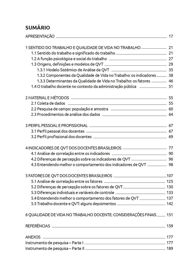 Esse livro foi inspirado na pesquisa de Pós-doutoramento realizada na HEC – Montreal pela pesquisadora Ana Alice Vilas Boas no período de setembro de 2012 a dezembro de 2013. Nessa pesquisa, a autora teve a oportunidade de trabalhar com a estimada Dra. Estelle Morin, profissional altamente capacitada e dedicada que inspirou a transformar nosso relatório de pesquisa em um livro-roteiro para outros profissionais que queiram trabalhar com esse tema usando um modelo mais abrangente. A Dra. Estelle Morin já vinha trabalhando com temas correlatos a Qualidade de Vida e o Sentido do trabalho há vários anos. Em 2008, ela e o pesquisador Francisco Aranha, da FGV, publicaram um relatório contendo o Modelo Geral de Qualidade de Vida no Trabalho. O qual serviu de base para a pesquisa que versou sobre um estudo comparativo da qualidade de vida de professores universitários do Brasil e do Canadá. Docentes de 3 instituições de Minas Gerais e 3 do Quebec participaram da pesquisa em 2013. Após a referida pesquisa, um novo projeto mais amplo foi apresentado ao CNPq em 2014 e aprovado na Demanda MCTI/CNPQ/Universal 14/2014 - Faixa B - Processo: 448147/2014-9, para ser executado de 2015 a 2018. Nessa nova pesquisa, o público-alvo passou a ser os docentes das universidades públicas das regiões Sudeste, Centro-Oeste e do Distrito Federal. Esse livro detalha a base teórica que sustentou a pesquisa, apresenta os procedimentos metodológicos adotados para realizar a pesquisa e analisar os dados e traz os resultados da pesquisa de campo realizada em 17 instituições de ensino superior dessas regiões. Esse livro traz contribuições para as áreas da Administração, Administração Pública, Estudos Organizacionais, Psicologia e Psicologia do Trabalho.